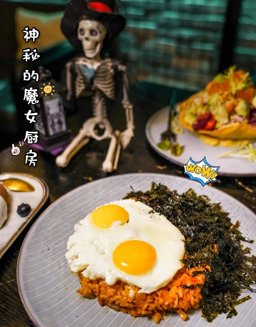 深圳 探店 鬼屋料理 神秘的魔女厨房 万圣节去哪玩 泡菜 饭团 探店 料理 炸鸡 金枪鱼 牛肉 韩国料理 骷髅 帽子 清明去哪玩 周末吃啥 出行 美食探店